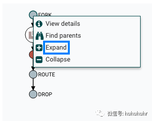 与查找父FlowFile有用的方式相同,用户可能还想确定从给定FlowFile生成的子项。要执行此操作,请右键单击沿袭图中的事件,然后从上下文菜单中选择"展开"。