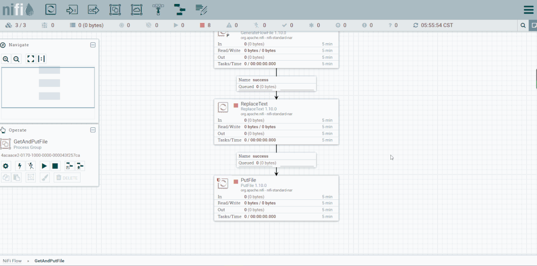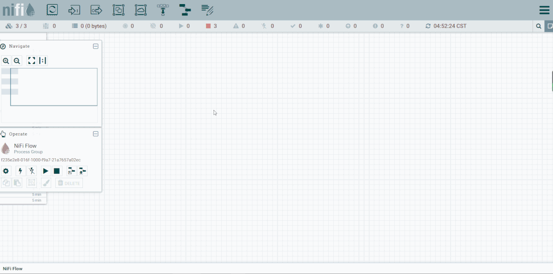 运行组件:当前在此进程组中运行的处理器,输入端口和输出端口的数量。 已停止的组件:当前未运行但有效且已启用的处理器,输入端口和输出端口的数量。这些组件已准备好启动。 无效组件:已启用但当前未处于有效状态的处理器,输入端口和输出端口的数量。这可能是由于配置错误或缺少关系造成的。 已禁用组件:当前已禁用的处理器,输入端口和输出端口的数量。这些组件可能有效,也可能无效。如果启动了进程组,则这些组件不会导致任何错误,但不会启动。 版本状态计数:版本状态计数元素提供有关进程组中有多少版本化进程组的信息。有关更多信息,请参阅版本状态 注释:将流程组添加到画布时,将为用户提供指定注释的选项,以便提供有关流程组的信息。稍后可以通过右键单击"进程组"并单击"配置"菜单选项来更改注释。