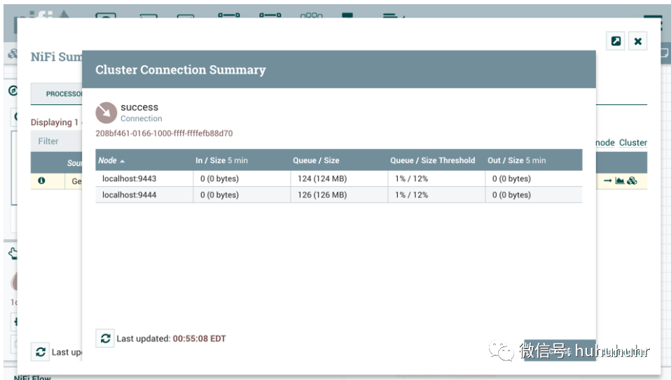 cluster启动的时候,NiFi必须确定哪个节点具有流的"正确"版本信息。这是通过对每个节点具有的流进行投票来完成的。当节点尝试连接到集群时,它会将其本地流的副本flow.xml.gz提供给集群协调器。如果尚未选择流"正确"流,则将节点的流与每个其他节点的流进行比较。然后每台对和自己一样的flow进行投票。如果还没有其他节点报告相同的流,则此流将以一票投票的方式添加到可能选择的流池中。如果投票时间(nifi.cluster.flow.election.max.wait.time)到了或者某一个flow.xml.gz已经达到票数(nifi.cluster.flow.election.max.candidates),则选出一个正确的flow.xml.gz。然后,不一致的node自动挂掉,除非它自己没有flow.xml.gz;而具有兼容流的节点将继承集群的流。选举是根据"民众投票"进行的,但需要注意的是,除非所有流量都是空的,否则获胜者永远不会是"空流"。