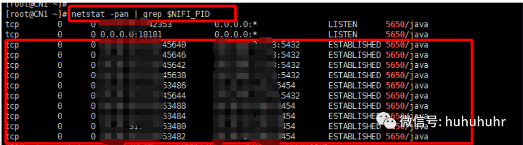 可以看到和数据库开启了5个tcp连接,也可以看到有五个socket处于连接状态