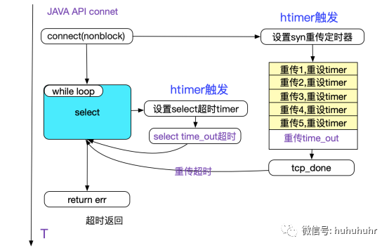 在timeout为0的时候,走默认的系统调用不设置超时时间的逻辑。在timeout>0时,将socket设置为非阻塞,然后用select系统调用去模拟超时,而没有走linux本身的超时逻辑。