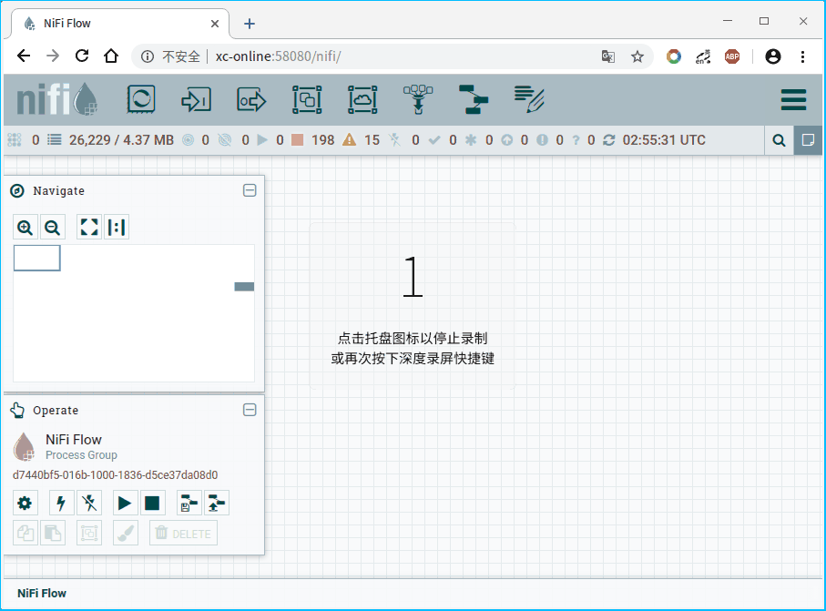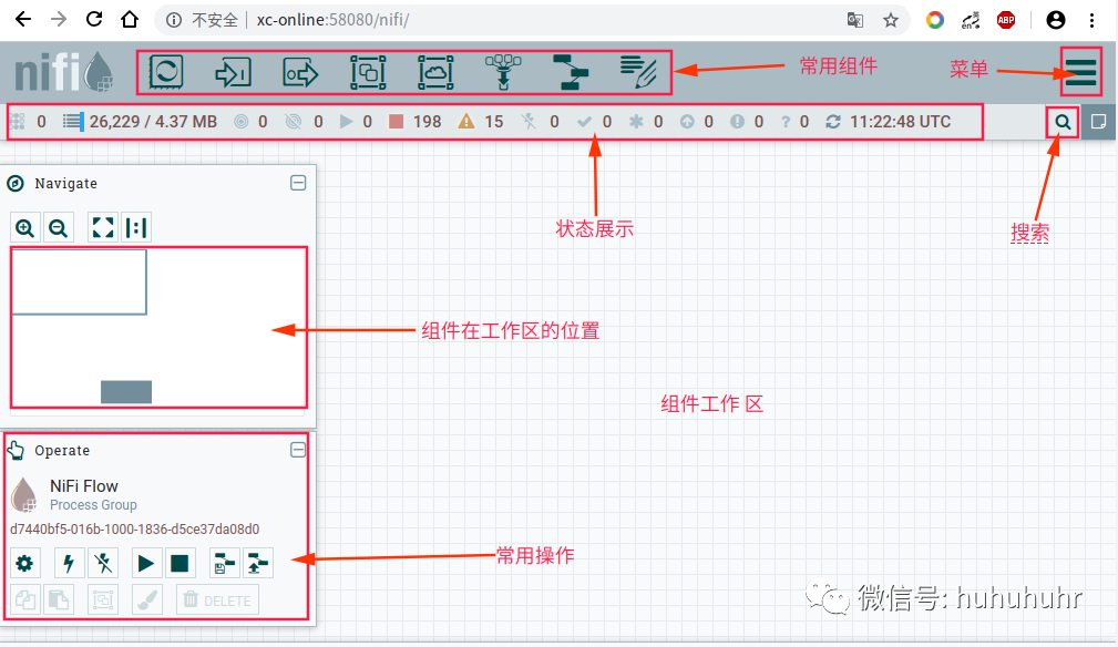 启动成功后访问 : ip:58080/nifi 进行查看, 访问界面如下: