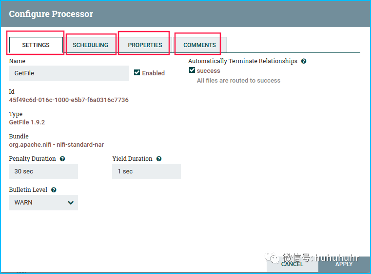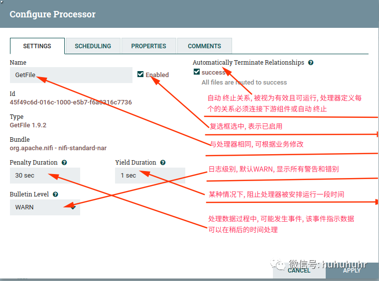 除了为每个组件提供的统计信息之外,用户还想知道流程是否出现问题。虽然我们可以监视日志中的任何内容,但在屏幕上弹出通知会更方便。如果处理器将日志级别设置为WARNING或ERROR,我们将在处理器的右上角看到"Bulletin Indicator"。此指示器看起来像一个粘滞便笺,将在事件发生后持续显示五分钟。将鼠标悬停在公告上可提供有关所发生情况的信息,以便用户无需筛选日志消息即可查找。如果是在集群中,公告还会指示是集群中的哪个节点发布了公告。我们还可以在处理器的"配置"对话框的"设置"选项卡中更改公告的日志级别。