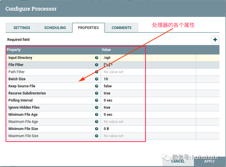 其次,利用属性配置处理器:处理器的配置依赖于数据本身。例如,PutFile能够使用Attributes来知道每个FlowFile的存储位置,而每个FlowFile的目录和文件名属性可能不同(结合表达式语言,比如每个流都有filename属性,组件中就可以这样配置文件名:${filename},就可以获取到当前FlowFIle中filename的属性值)。
