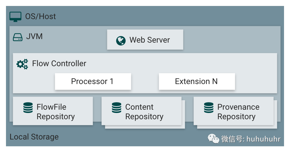有各种类型的NIFI扩展,这些扩展在其他文档中进行了描述。这里的关键点是NIFI扩展在JVM中操作和执行。