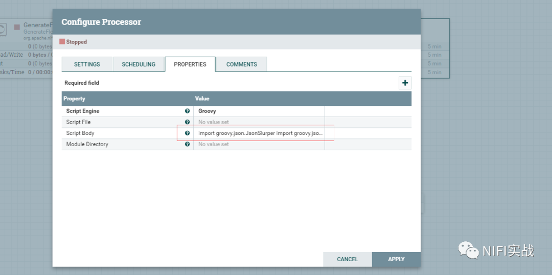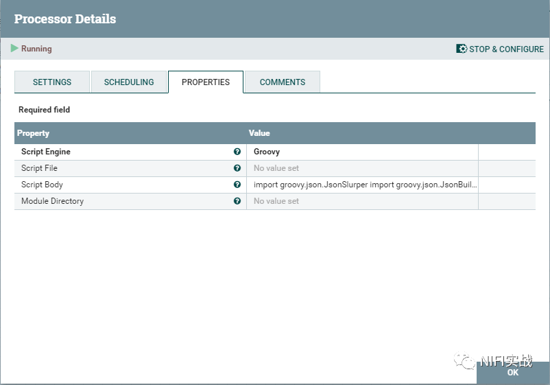 备注:Script File和Script Body不能全填,也不能全不填,Script Body不支持动态获取,Script File支持从变量中获取,均不支持从flowfile里边获取。