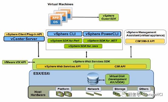 VMware 通过 Web Service 向客户端提供访问接口,这些接口可用于管理虚拟机和其他虚拟设备, 包括数据存储(datastore)、网络(network)等设备; 它还提供了包括Java、.NET、Python、Perl、REST以及Ruby等几种语言。对于其他语言,则需要通过 SOAP 协议访问其 web service, gSoap 是一种比较常见的用于C/C++语言编写 web service 客户端程序的套件。