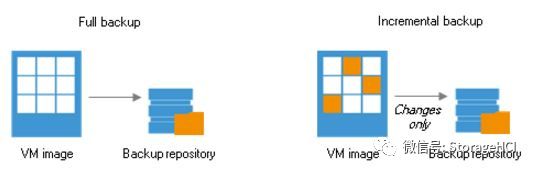 相对于全量备份时将vmdk 的全部数据块都保存下来(左图),基于 CBT 的增量备份只保存自从上次备份以来的发生了变化了的数据块(上图)。