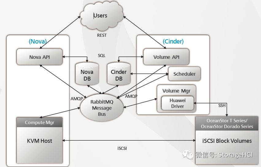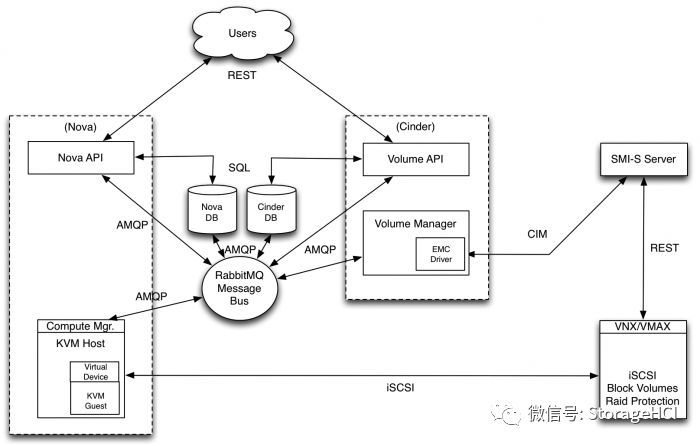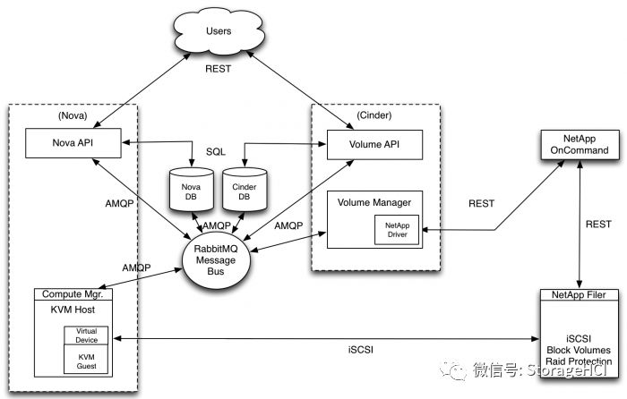 从目前的实现来看,Cinder 对本地存储和 NAS 的支持比较不错,可以提供完整的 Cinder API V2 支持,而对于其它类型的存储设备,Cinder 的支持会或多或少的受到限制,下面是 Rackspace 对于 Private Cloud 存储给出的典型配置: