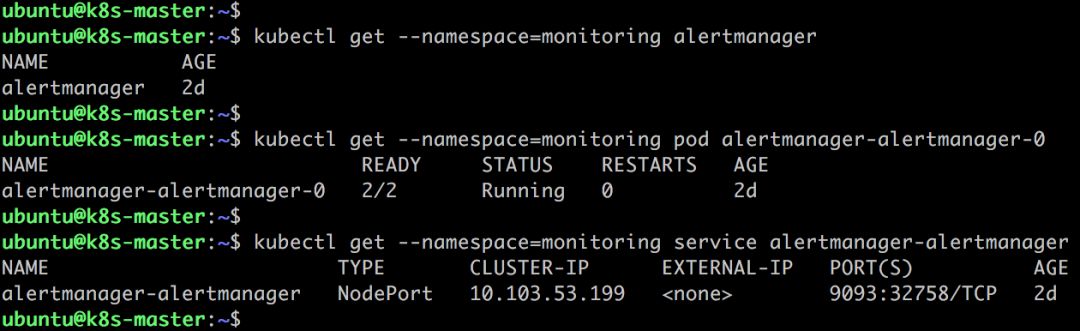 helm install --name alertmanager --namespace=monitoring helm/alertmanager