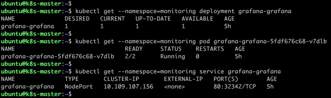 同样可以查看 Alertmanager 和 Grafana 的相关资源。