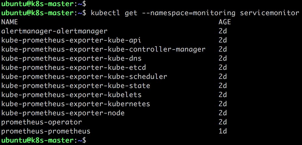 helm install --name prometheus --set serviceMonitorsSelector.app=prometheus --set ruleSelector.app=prometheus --namespace=monitoring helm/prometheus