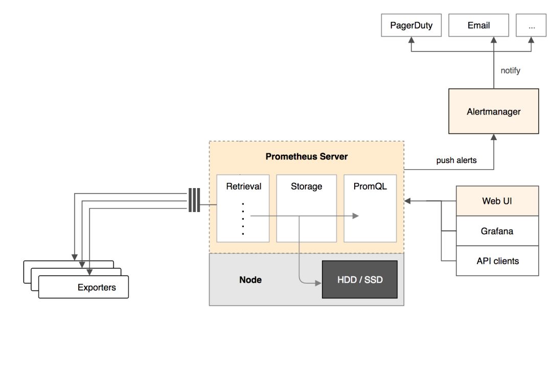 Prometheus 是一个非常优秀的监控工具。准确的说,应该是监控方案。Prometheus 提供了数据搜集、存储、处理、可视化和告警一套完整的解决方案。Prometheus 的架构如下图所示: