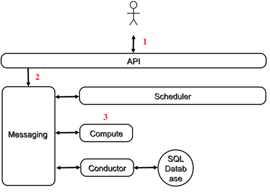 客户(可以是 OpenStack 最终用户,也可以是其他程序)向 API(nova-api)发送请求:“Rebuild 这个 Instance”