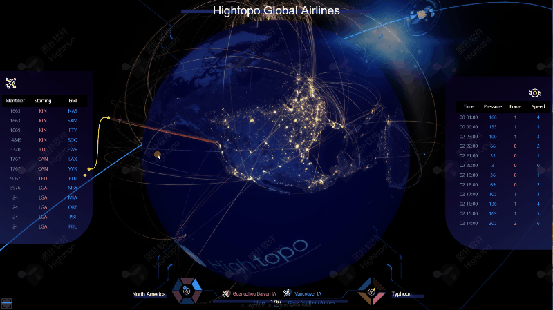 HT 可视化可实现视频、图片等文件在 2D、3D 场景结合,展示飞机高性能计算与大容量存储、网络数据融合服务、以及设备系统的仿真展现与数据结合,将杂乱情报数据进行精简提炼,并结合专业的数据模型和分析算法加以实时分析判断。