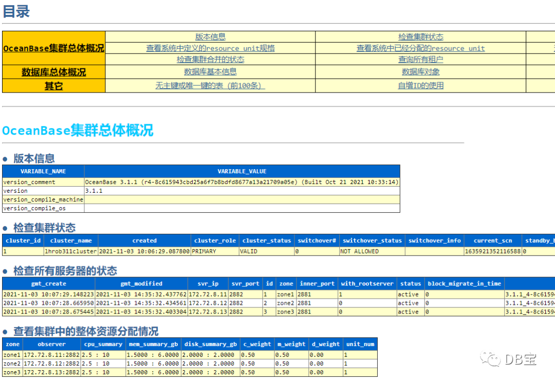 可以使用麦老师的OceanBase的巡检脚本(https://www.xmmup.com/shujukuxunjianjiaoben.html),脚本目前不是很详细,当然一直在完善中,如下: