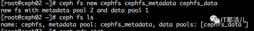 ceph fs new cephfs cephfs_metadata cephfs_data