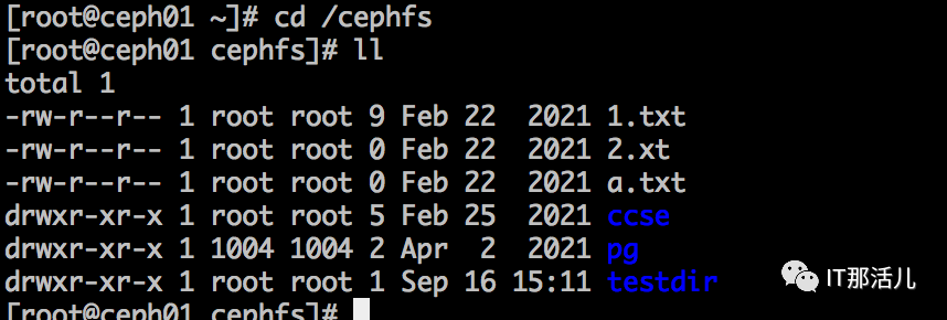 然后可以进入/cephfs目录,写入文件了进行使用了。
