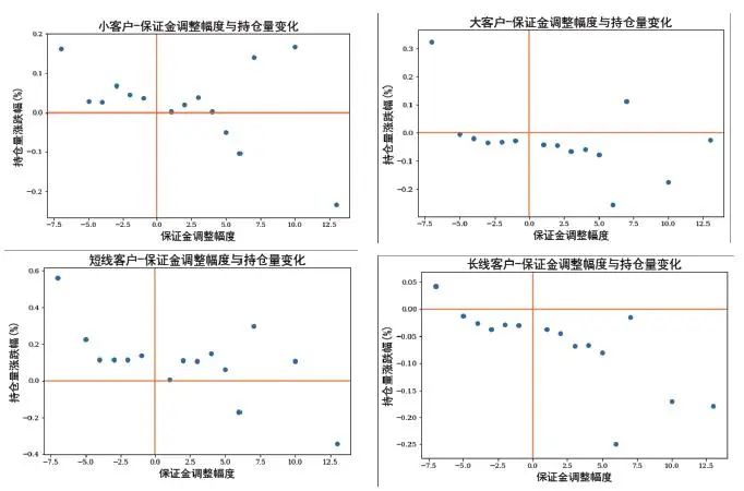 图3.不同客户群体下保证金调整幅度与调整点前后五日持仓量均值变化关系
