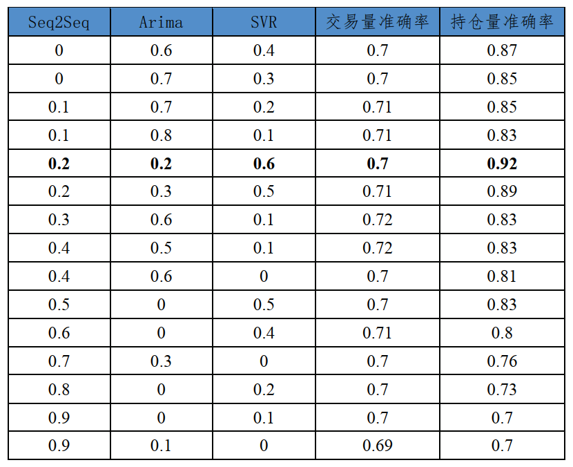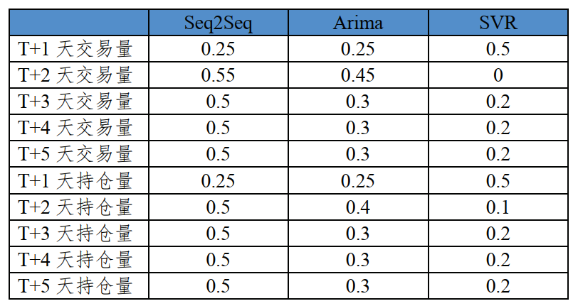期货市场行情瞬息万变,客户群体的交易持仓行为受到众多因素的影响,因此单一模型容易对历史数据产生过拟合现象,并且面对未知影响时模型鲁棒性与泛化能力较差。基于此,本文提出基于ARIMA、SVR及Seq2Seq三个单一模型的融合模型,并利用网格搜索技术进行参数权重配置。