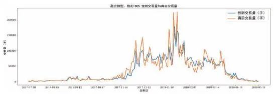 为直观展示模型融合的优势,本文以CF1805整个挂牌周期为标的,比较融合模型与各单一模型的预测效果,结果见下表。从表7中可知,融合模型的交易持仓量预测准确率均高于单一模型。将预测标的放宽至所有合约,计算统计后,融合模型在88%的情况下效果优于单一模型,证实了融合方案的有效性。