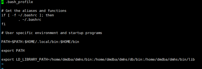 export LD_LIBRARY_PATH=/home/dmdba/dmhs/bin:/home/dmdba/dmhs/db/bin:/home/dmdba/dmhs/bin/lib