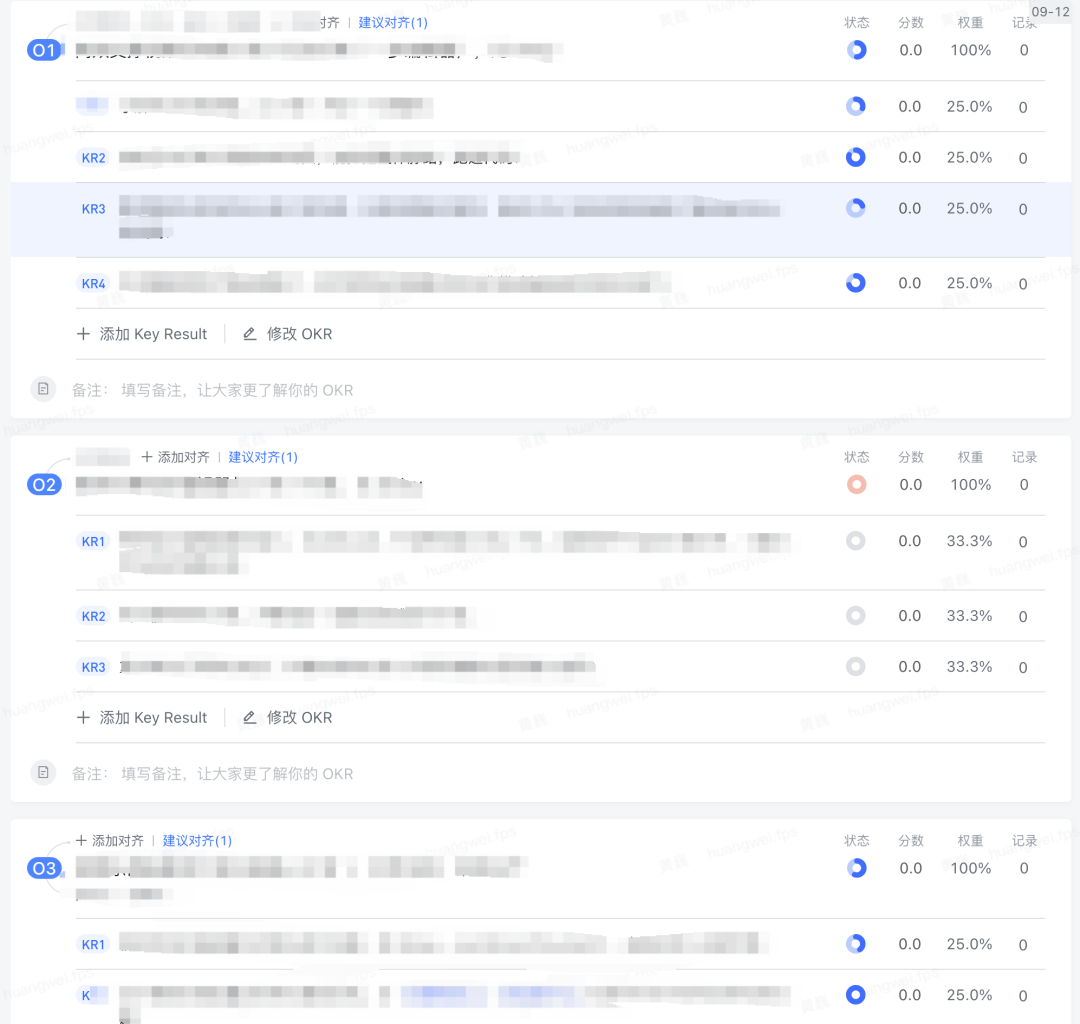 比如我每个双月都会规划好自己这个双月需要做什么,然后会拆解达到什么关键结果可以衡量我这个目标达成,并且会随时记录自己的进展和修改自己的 OKR。
