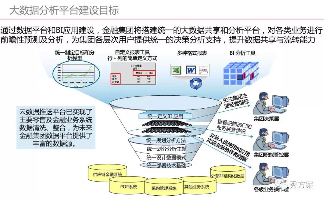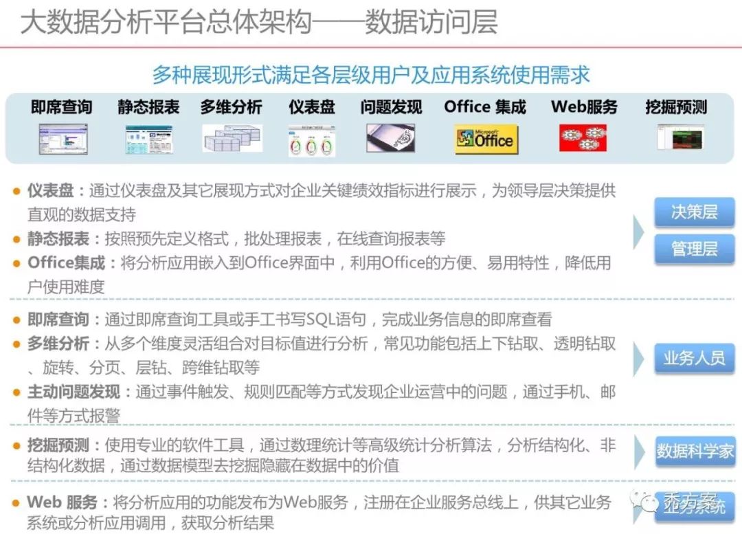 在搭建大数据分析平台之前,要先明确业务需求场景以及用户的需求,通过大数据分析平台,想要得到哪些有价值的信息,需要接入的数据有哪些,明确基于场景业务需求的大数据平台要具备的基本的功能,来决定平台搭建过程中使用的大数据处理工具和框架。