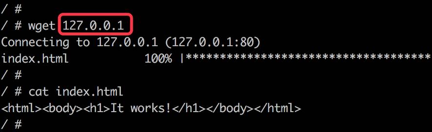 看!busybox 和 web1 的网卡 mac 地址与 IP 完全一样,它们共享了相同的网络栈。busybox 可以直接用 127.0.0.1 访问 web1 的 http 服务。