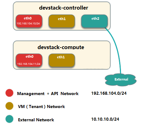 控制节点的 eth2 与 External 网络连接,IP 段为 10.10.10.0/24。