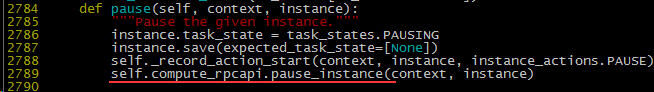 查看源代码 opt/stack/nova/nova/compute/api.py,方法是 pause。