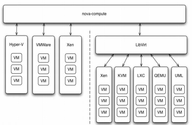 接着的问题是:现在市面上有这么多 Hypervisor,nova-compute 如何与它们配合呢?