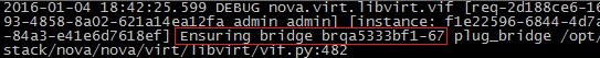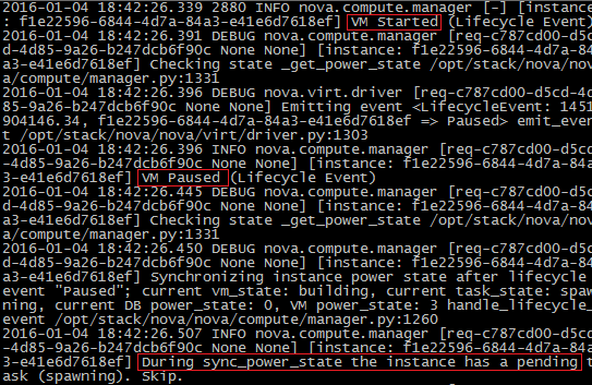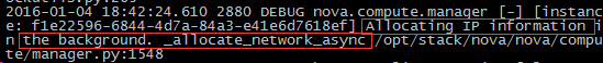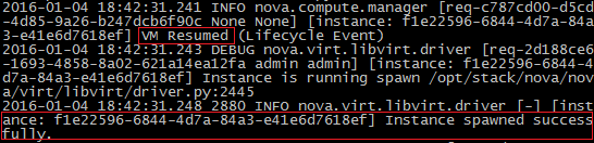 当 nova-scheduler 选定了部署 instance 的计算节点后,会通过消息中间件 rabbitMQ 向选定的计算节点发出 launch instance 的命令。 该计算节点上运行的 nova-compute 收到消息后会执行 instance 创建操作。 日志 opt/stack/logs/n-cpu.log 记录了整个操作过程。