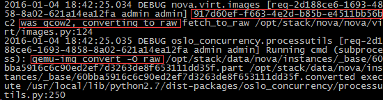 image(ID为 917d60ef-f663-4e2d-b85b-e4511bb56bc2)是 qcow2 格式,nova-compute 将其下载,然后通过 qemu-img 转换成 raw 格式。 转换的原因是下一步需要将其作为 instance 的镜像文件的 backing file,而 backing file不能是 qcow2 格式。