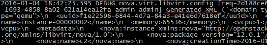 创建的 XML 文件会保存到该 instance 目录 /opt/stack/data/nova/instances/f1e22596-6844-4d7a-84a3-e41e6d7618ef,命名为 libvirt.xml