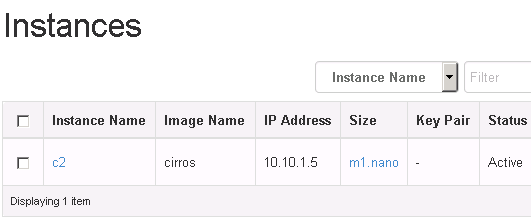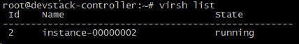 至此,instance 已经成功启动。 OpenStack 图形界面和 KVM CLI 都可以查看到 instance 的运行状态。