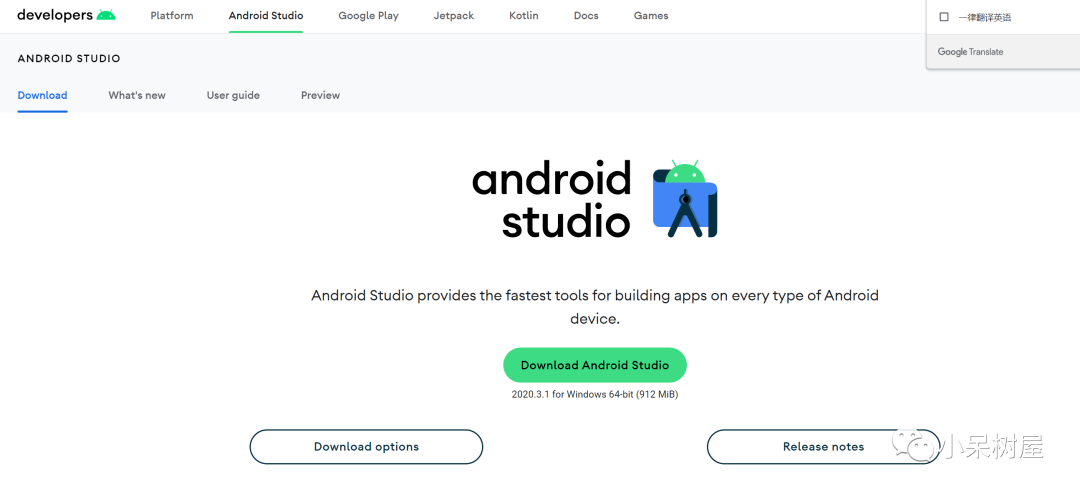 进入Android Studio的官网下载安装包