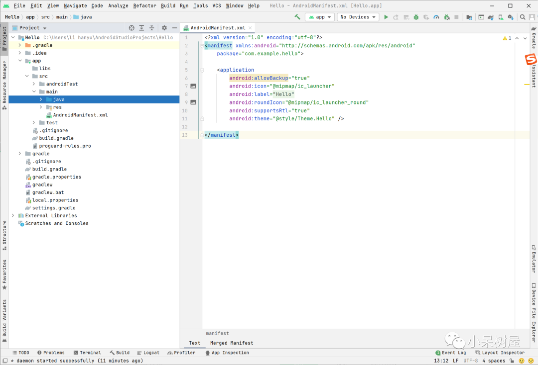 在经过一段时间的下载中,我们终于进入到了主界面。我们主要的开发都会在这个文件夹中。