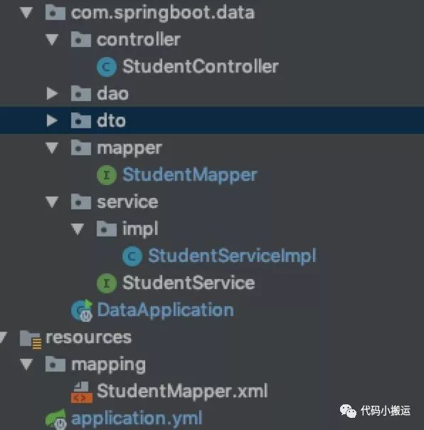 import java.util.List;import com.springboot.data.dto.Student;import com.springboot.data.dto.StudentBean;import org.apache.ibatis.annotations.Mapper;@Mapperpublic interface StudentMapper {int add(Student student);int update(Student student);int delete(Long id);Student find(Long id);List<StudentBean> findAll();}