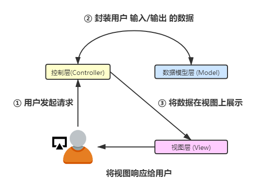 ① 用户在前端的页面上,进行一个提交或者说点击 URL,就会向后端服务器发送一个请求
