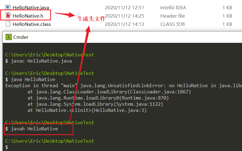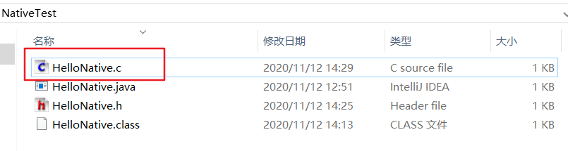 生成了头文件之后,我们再在当前文件夹下创建一个 HelloNative.c