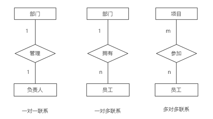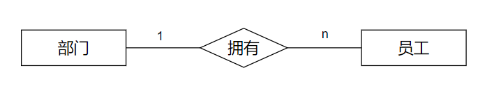 一对多联系(1 : n),例如部门和员工之间的联系,一个部门有多个员工,而每个员工只属于一个部门;