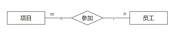 它表示一个项目至少要有一个员工参加(强制性的),而一个员工可能不参加任何一个项目(可选的)。