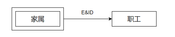 上图就表示了家属实体是弱实体,不能单独存在必须依赖与职工实体,这里的标示的依赖信息为存在依赖(E)和标识依赖(ID):