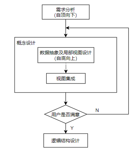 概念设计是设计形成一个独立于 DBMS 的概念数据模型,用来表述数据与数据之间的联系,它直接面向现实世界,因而很容易被用户所理解,方便用于数据库设计者与用户的交流。该阶段先设计与用户具体应用相关的数据结构——用户视图,然后再不断对视图进行集成修改,最终得到一个能正确、完整地反应该单位数据及联系并满足各种处理要求的数据模型,之后再把概念模型转换成具体机器上 DBMS 支持的数据模型。