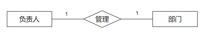 一对一联系(1 : 1),例如部门和负责人之间的联系,一个部门有一个负责人,一个负责人负责一个部门;