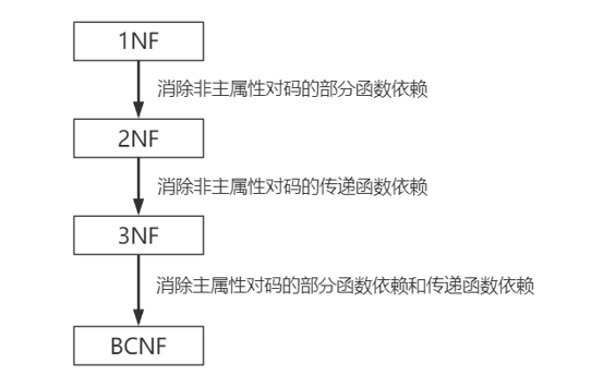 求解到了候选码、主属性和非主属性,就可以利用下面规范化理论的步骤,消除非主属性对码的不同函数依赖(主要是拆分模式),以此来达到不同的范式层次。