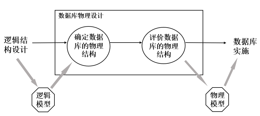 数据库物理设计一般包含两个步骤:确定数据库的物理结构(存取方法和存储结构)、对物理结构进行评价(时间和空间效率)。