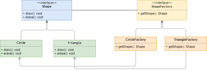 具体实现类(如Circle、Triangle ):它是工厂类创建的目标,所有被创建的对象都充当这个角色的某个具体实现类。具体实现类都实现了一个公共的接口或者都继承了一个公共的父类,它们需要实现接口或父类中声明的抽象方法。