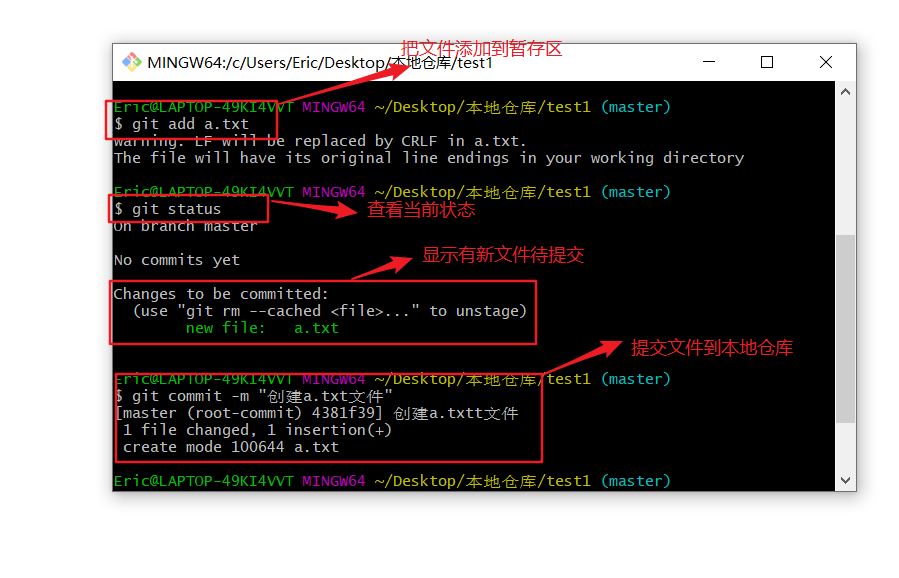 git add命令把文件提交到暂存区,再利用
